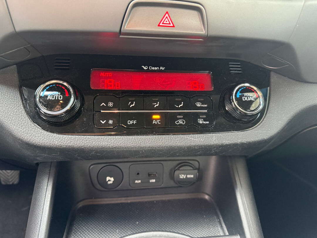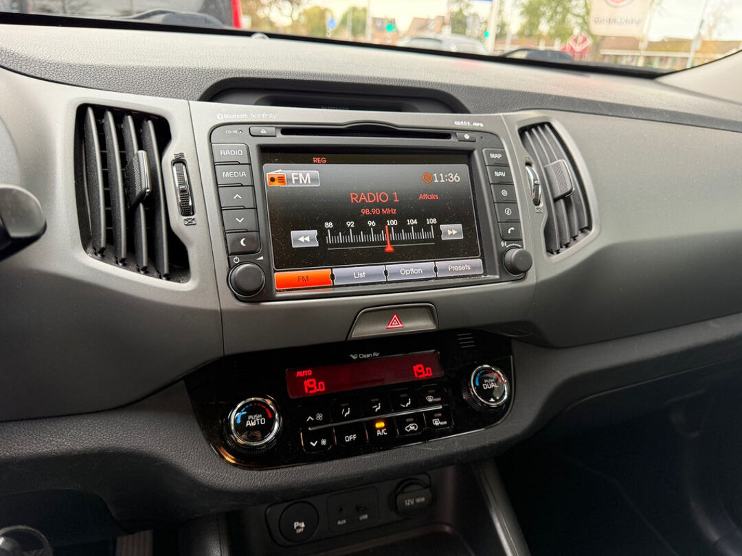 De achteruitrijcamera laat duidelijk zien hoeveel ruimte u nog heeft bij het inparkeren. Terwijl het navigatiesysteem de ideale route voor u uitstippelt, geniet u van de kwaliteit van het cd-speler. De bediening is bovendien gemakkelijk via knoppen op het stuur. Electronic climate control verwarmt of koelt het interieur met een druk op de knop. Van een paar vegen bij motregen tot maximale stand bij noodweer: de regensensor reageert zelfstandig en direct. Met de cruise control kunt u zorgen dat u op die rechte stukken toch uit beeld blijft bij de flitsers. De uitrusting van deze Kia is met automatisch dimmende binnenspiegel, lederen stuur en centrale deurvergrendeling met afstandsbediening behoorlijk compleet.