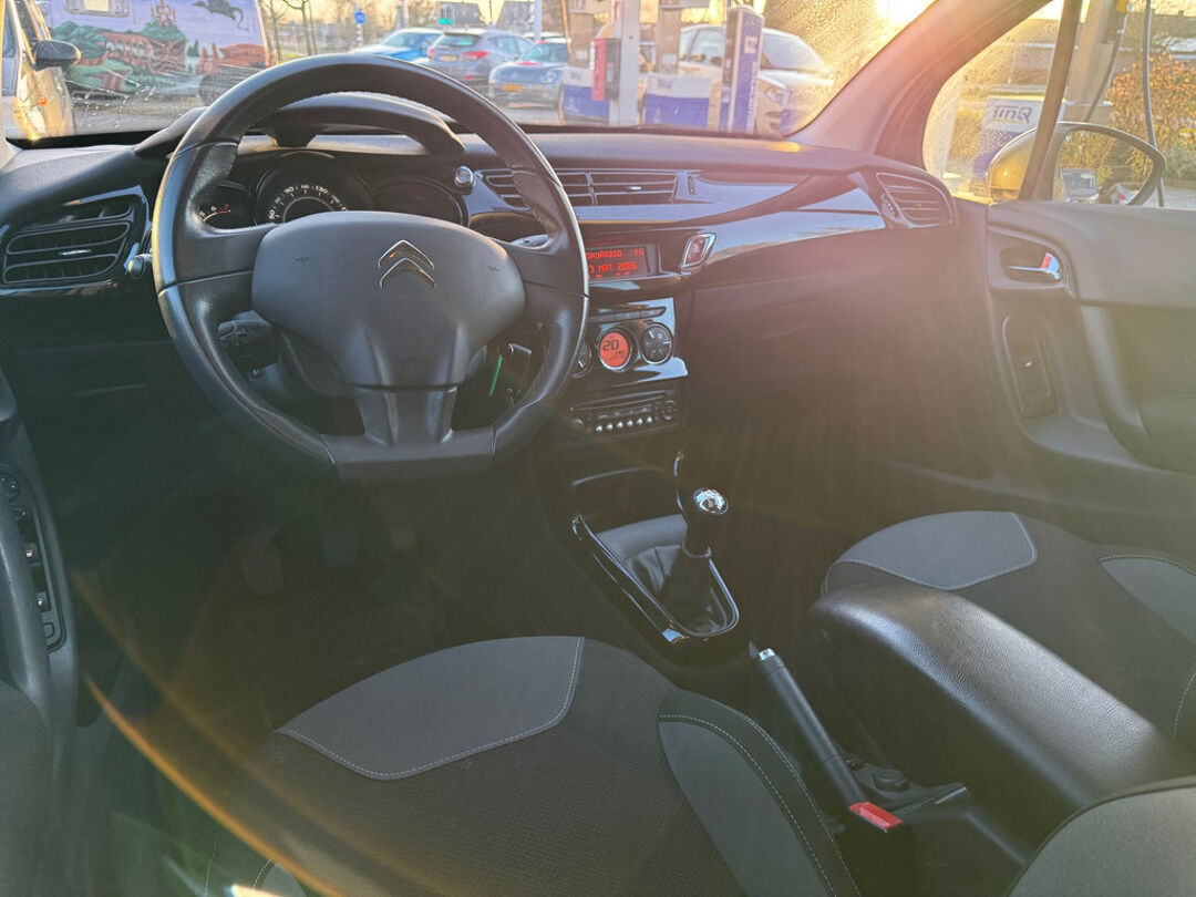 Dankzij automatische airconditioning is het interieur behaaglijk warm of verfrissend koel. Boem is ho? Niet bij deze Citroen C3. De piepjes van de parkeersensoren waarschuwen u op tijd voor obstakels. De cruise control vermindert het brandstofverbruik en vergroot het comfort. Met lederen stuur, centrale deurvergrendeling met afstandsbediening en boordcomputer is deze Citroen helemaal compleet.